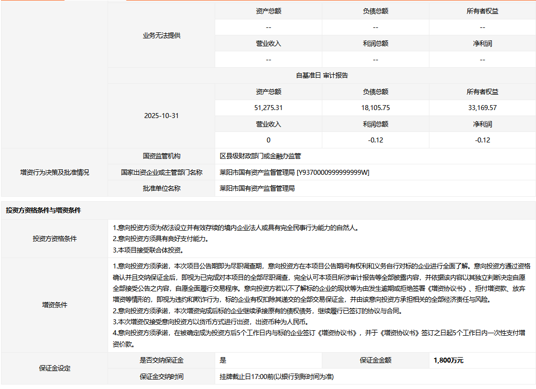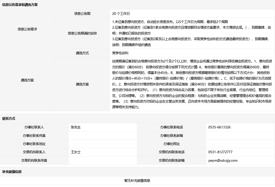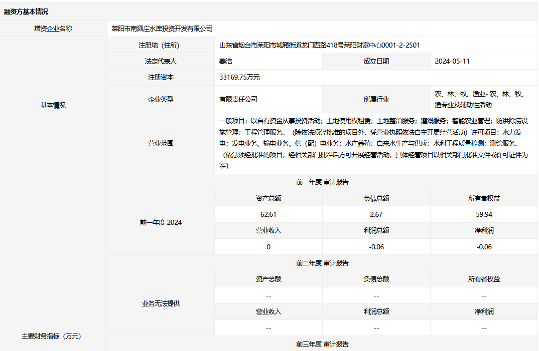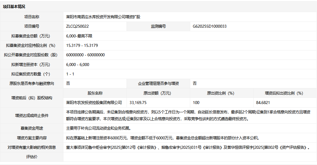 莱阳市南泗庄水库投资开发有限公司增资扩股