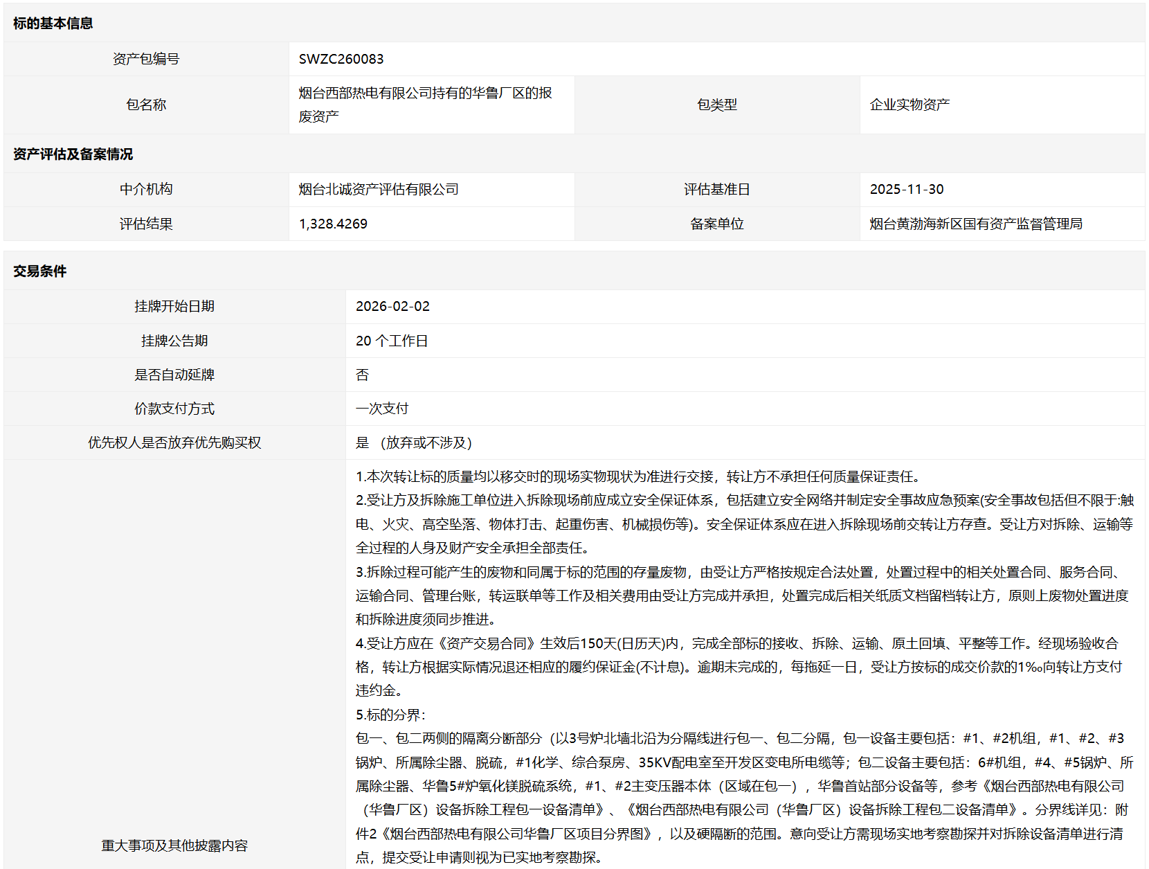 烟台西部热电有限公司持有的华鲁厂区的报废资产
