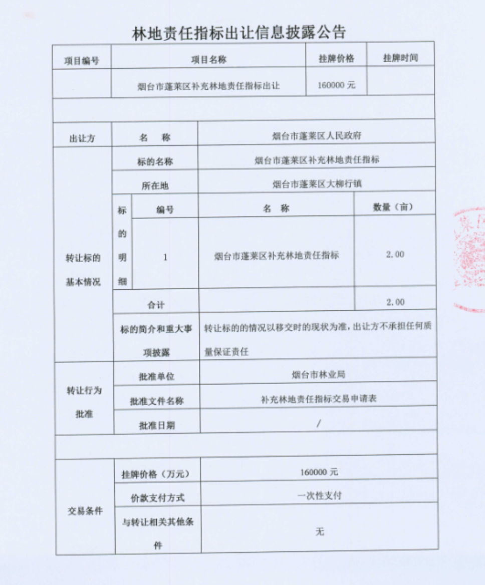 烟台市蓬莱区补充林地责任指标出让(第二批)