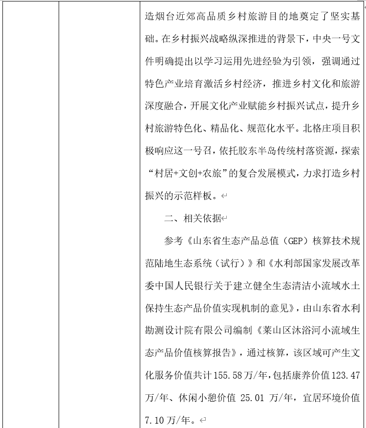 莱山区沐浴河小流域(北格庄村)生态产品价值转化项目