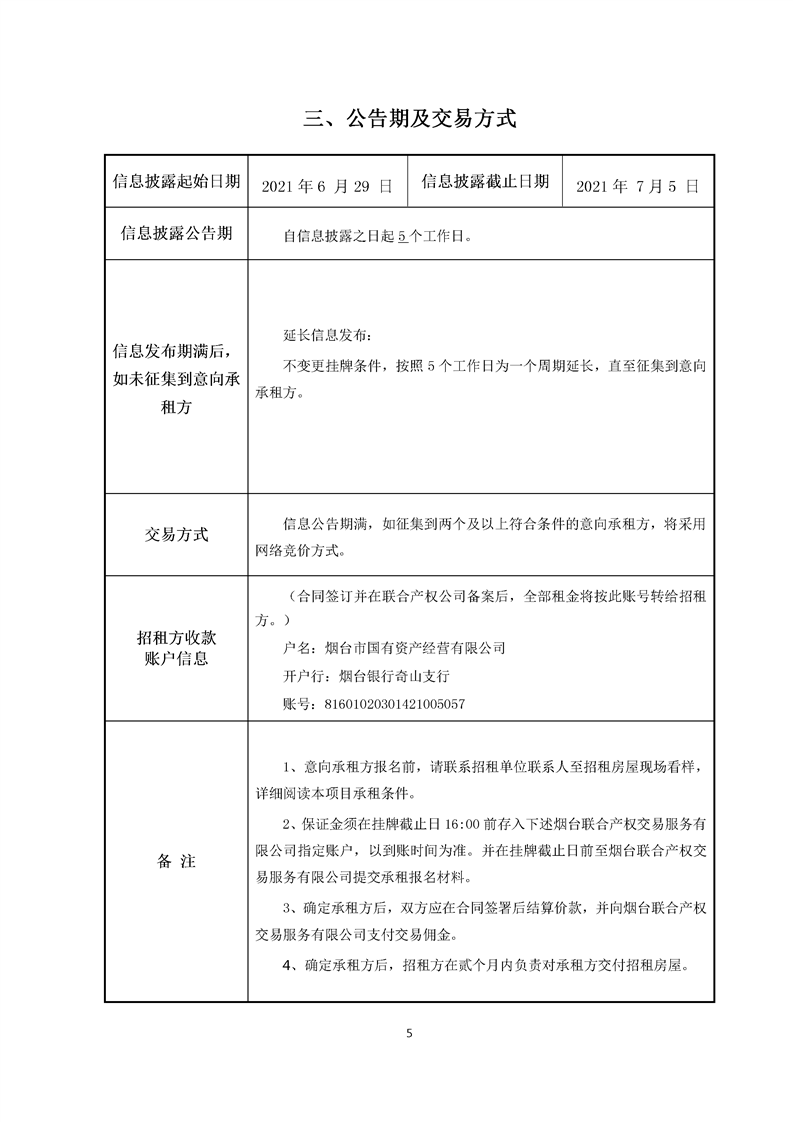 挂牌起止日期:2021年6月29日至2021年7月5日