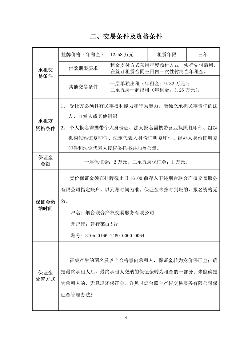 一层保证金:2万元,二至五层保证金:1万元