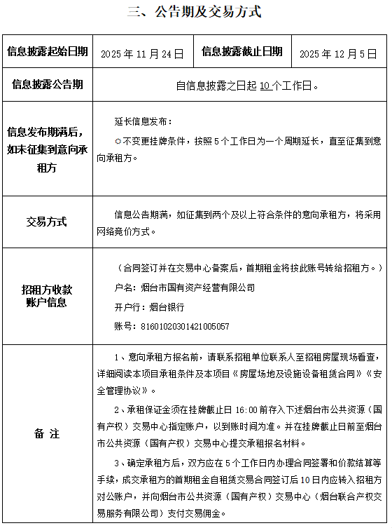 挂牌起止日期:2025年11月24日至2025年12月5日