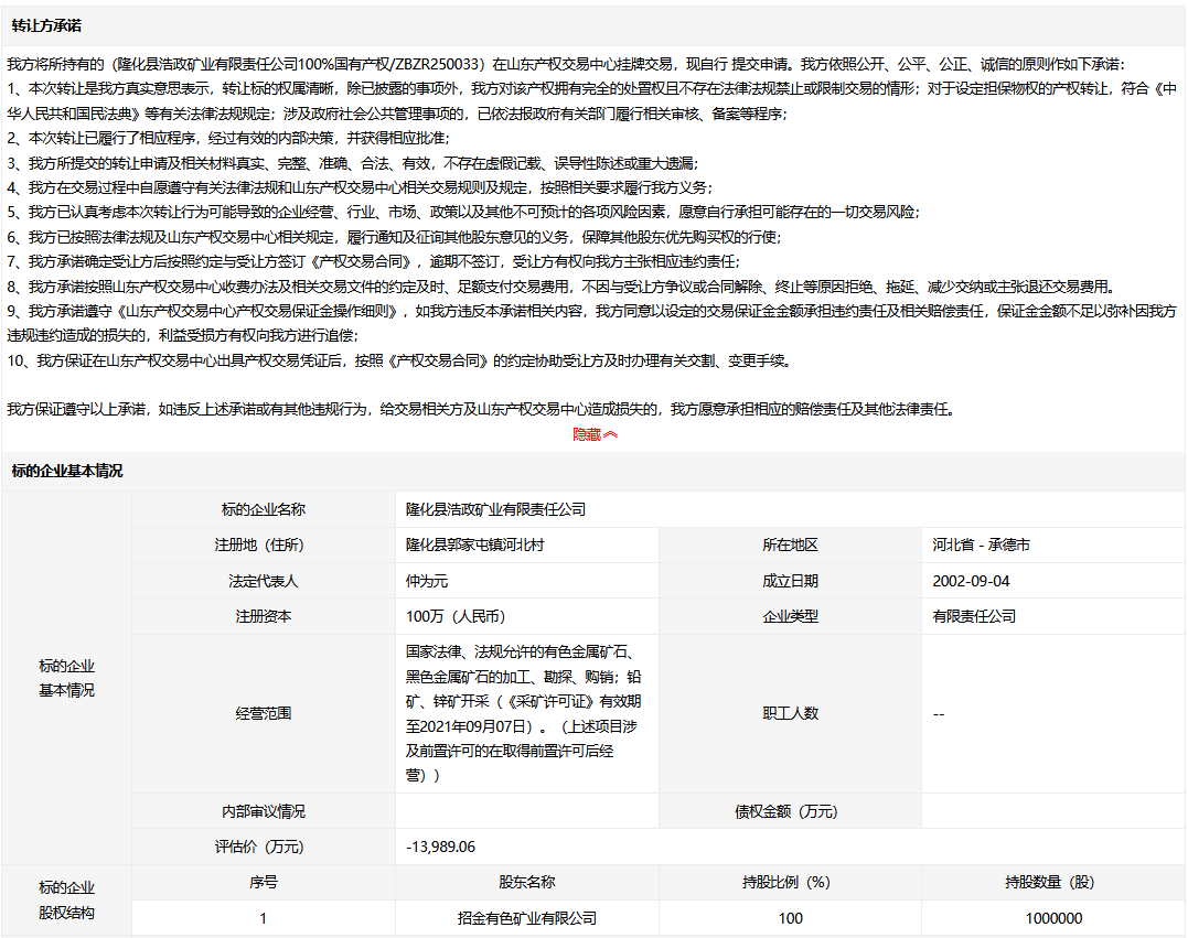 栖霞市安达民爆物品有限公司100%国有股权及债权