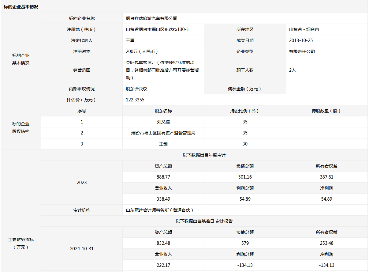 烟台祥瑞旅游汽车有限公司35%国有股权