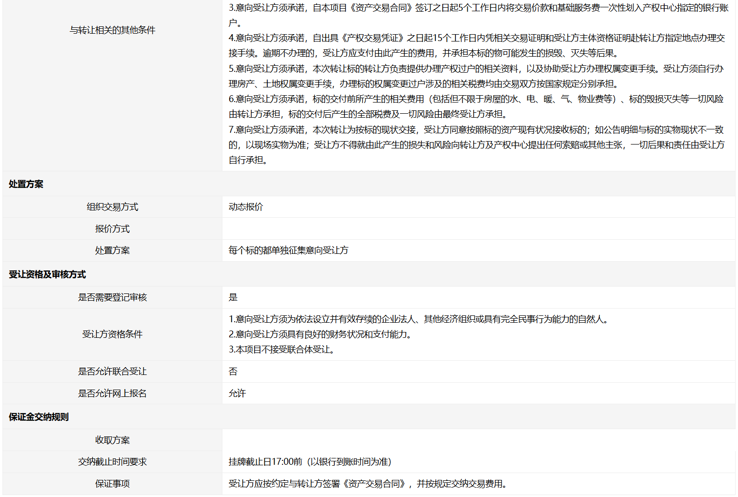 交易条件与受让方资格条件