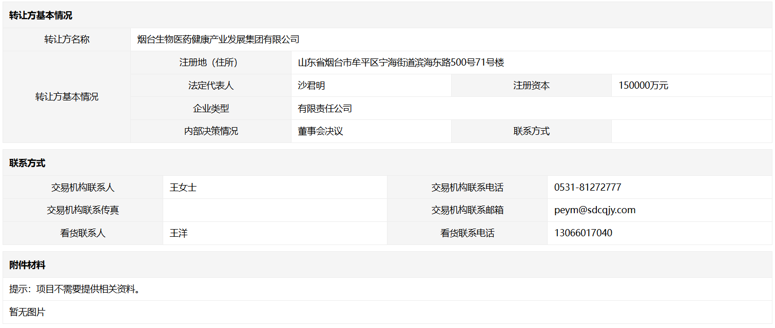 转让方:烟台生物医药健康产业发展集团有限公司