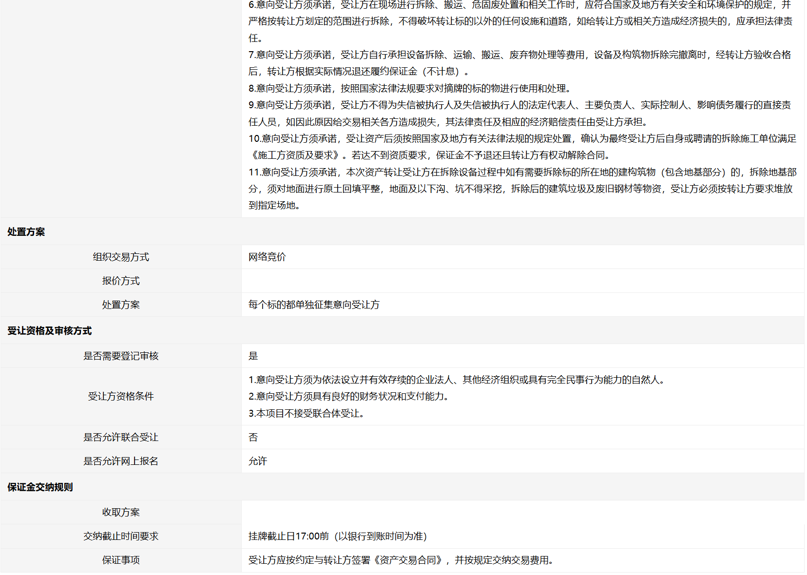 交易条件与受让方资格条件