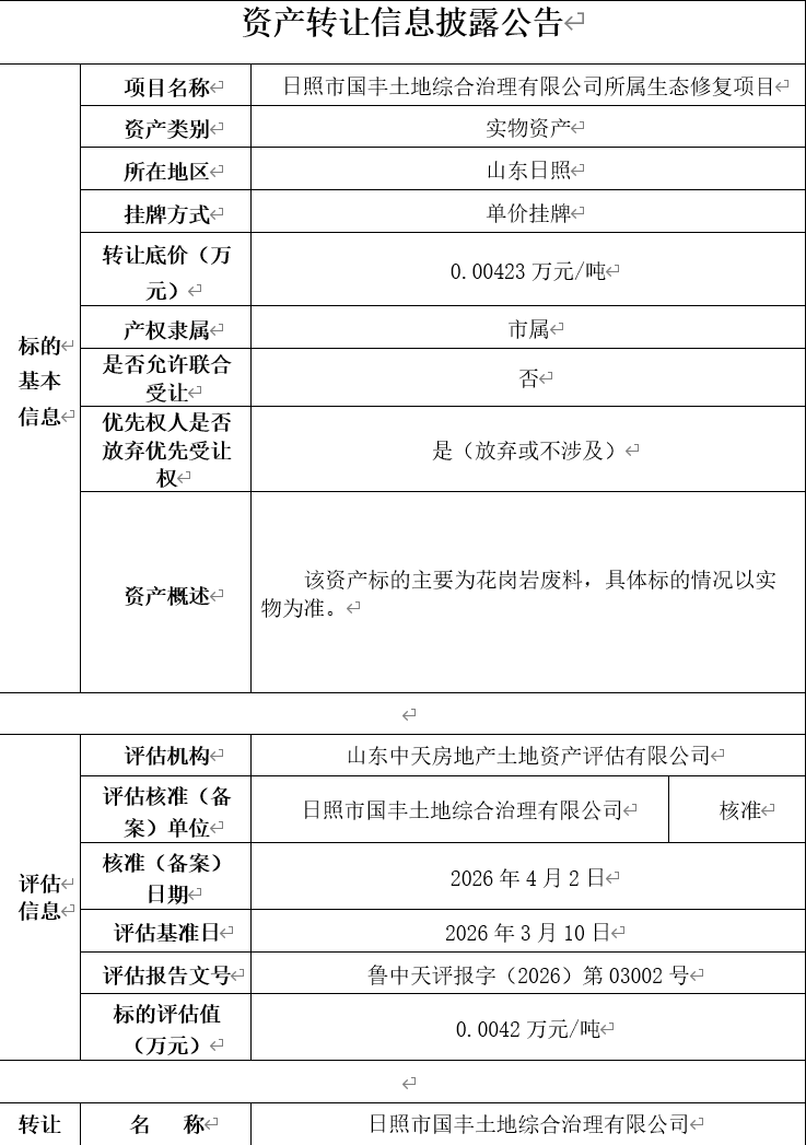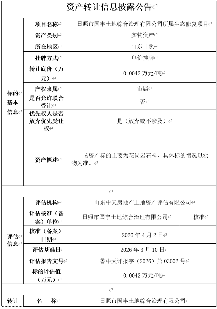日照市国丰土地综合治理有限公司所属生态修复项目