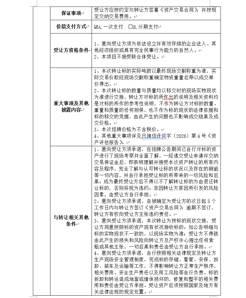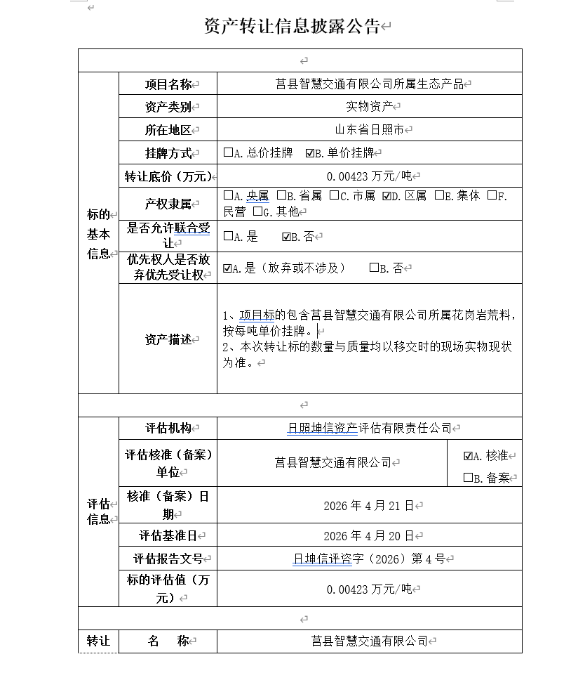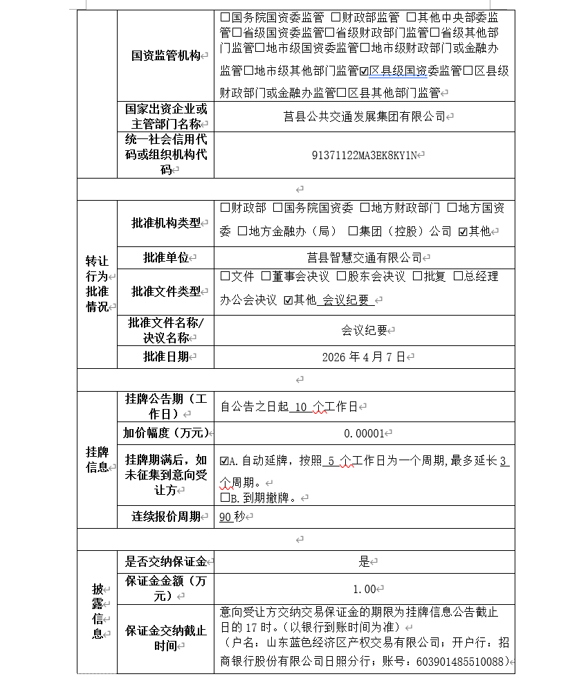 挂牌起止日期:2026年4月27日-2026年5月12日