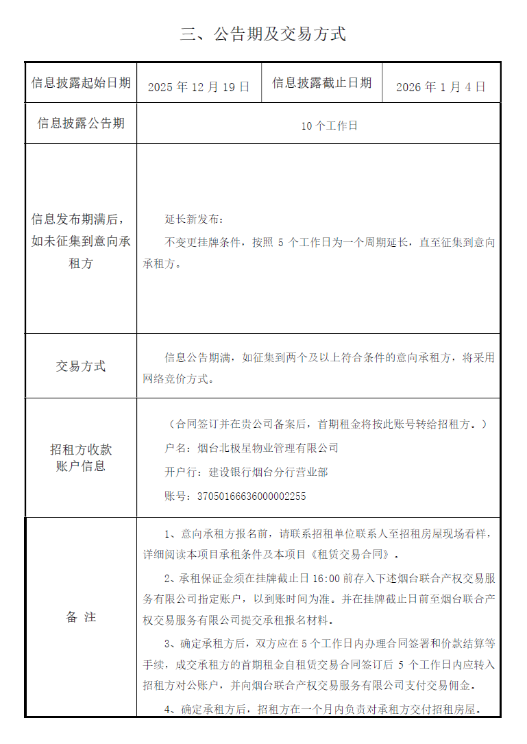 挂牌起止日期:2025年12月19日-2026年1月4日