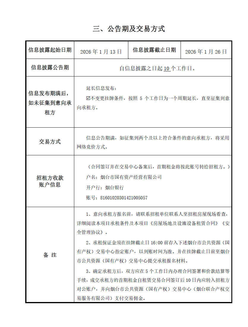 挂牌起止日期:2026年1月13日-2026年1月26日