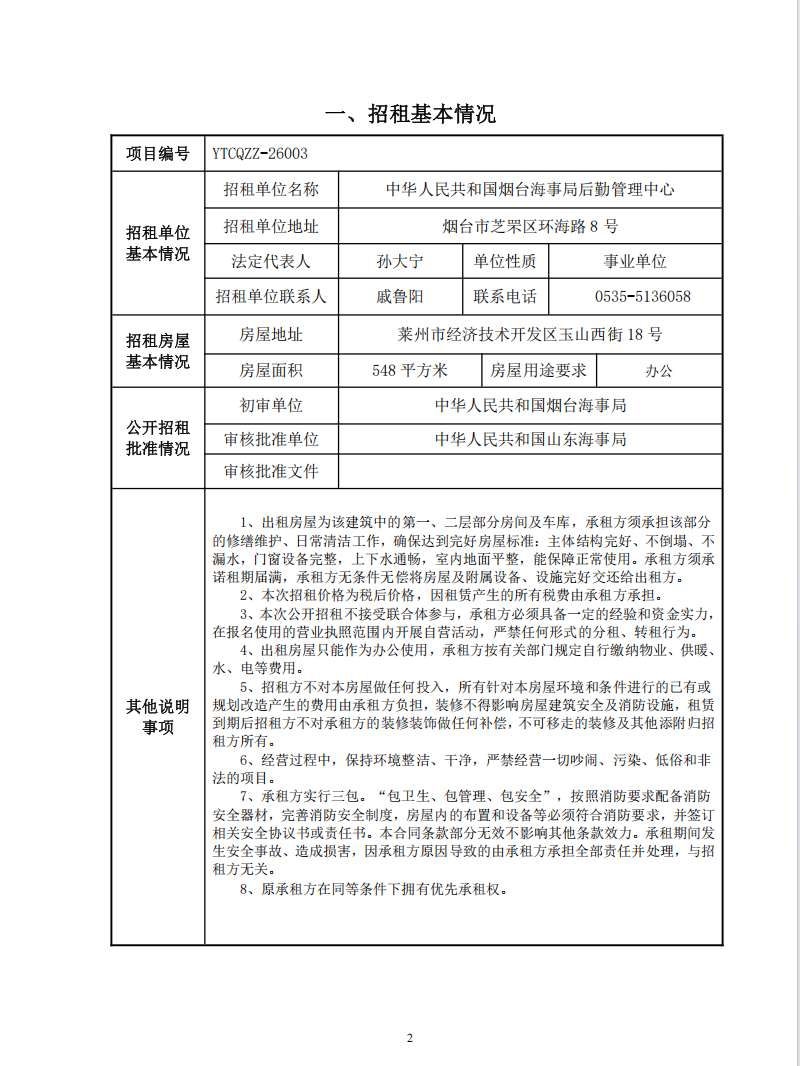 莱州后勤管理中心业务用房招租